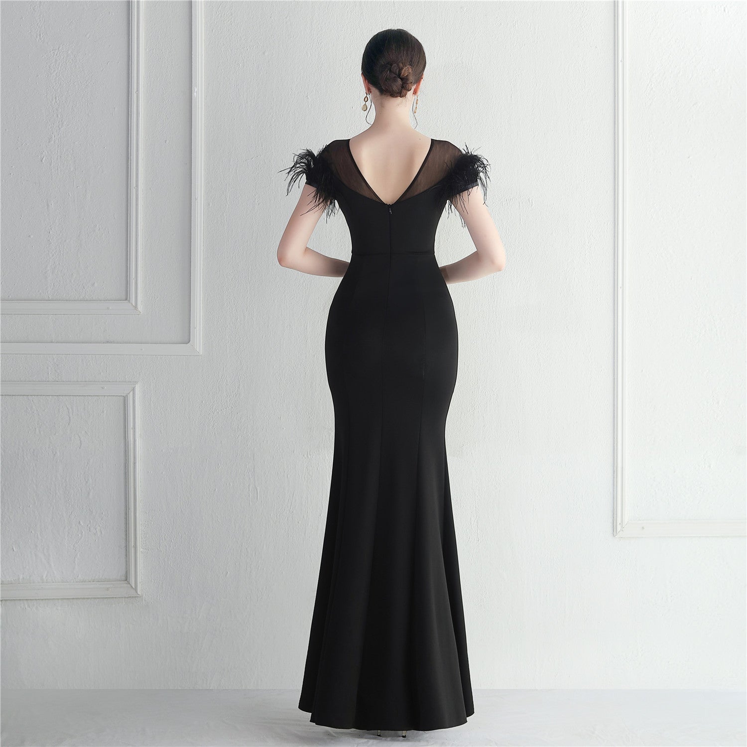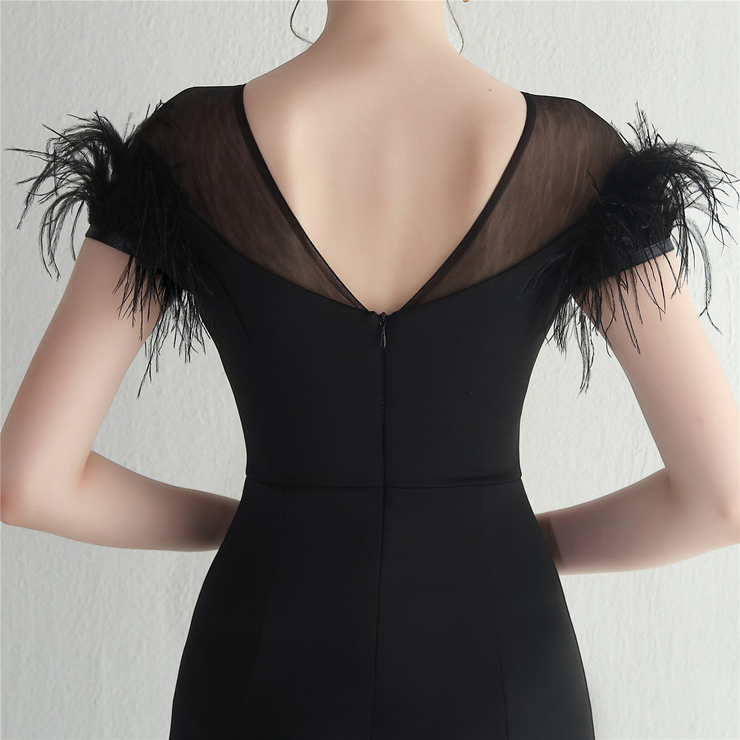 Elevate your formal fashion game with this Emerald/Black feather-accented mermaid evening gown! Perfect for prom 2025, gala nights, or cocktail parties, this luxurious dress features slit and feather embellishments. Stay ahead of the style curve with this designer piece and make a statement on any special occasion. Shop now!