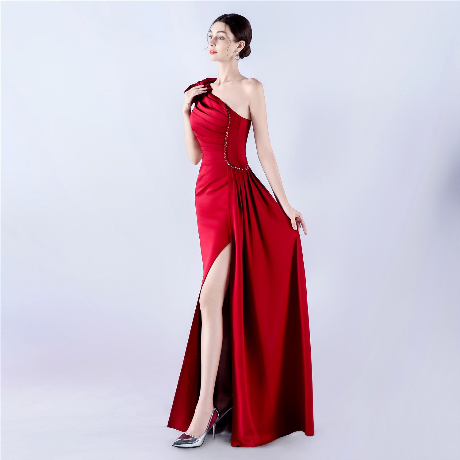 Elevate your style and turn heads with our Rose Elite/Burgundy one-shoulder mermaid evening gown. Perfect for prom 2025, gala events, or as wedding guest attire. This exquisite dress features a stunning slit and floral accents, making it a must-have for any special occasion. Shop now and stay on trend with formal fashion 2025.