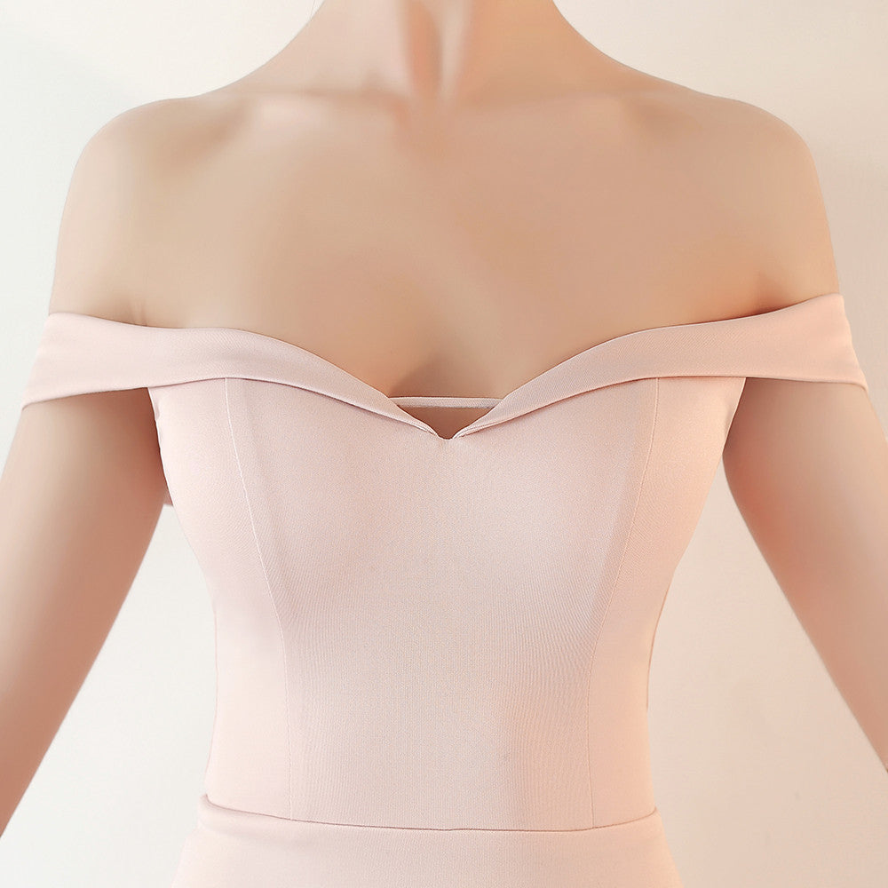 Introducing Roselle, an off-shoulder midi dress that epitomises contemporary elegance. This expertly tailored piece features a sweetheart neckline and figure-hugging silhouette in a sophisticated blush tone, while a delicate ruffle hem creates graceful movement. The design seamlessly transitions from daytime sophistication to evening glamour, making it an essential addition to any occasion wardrobe. Style with heels and a structured clutch for a polished, refined look that commands attention.