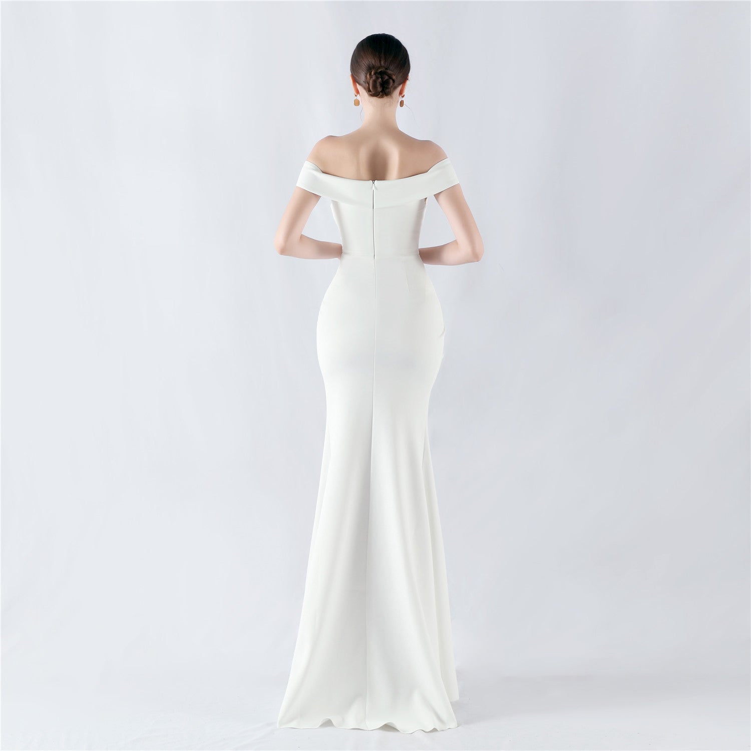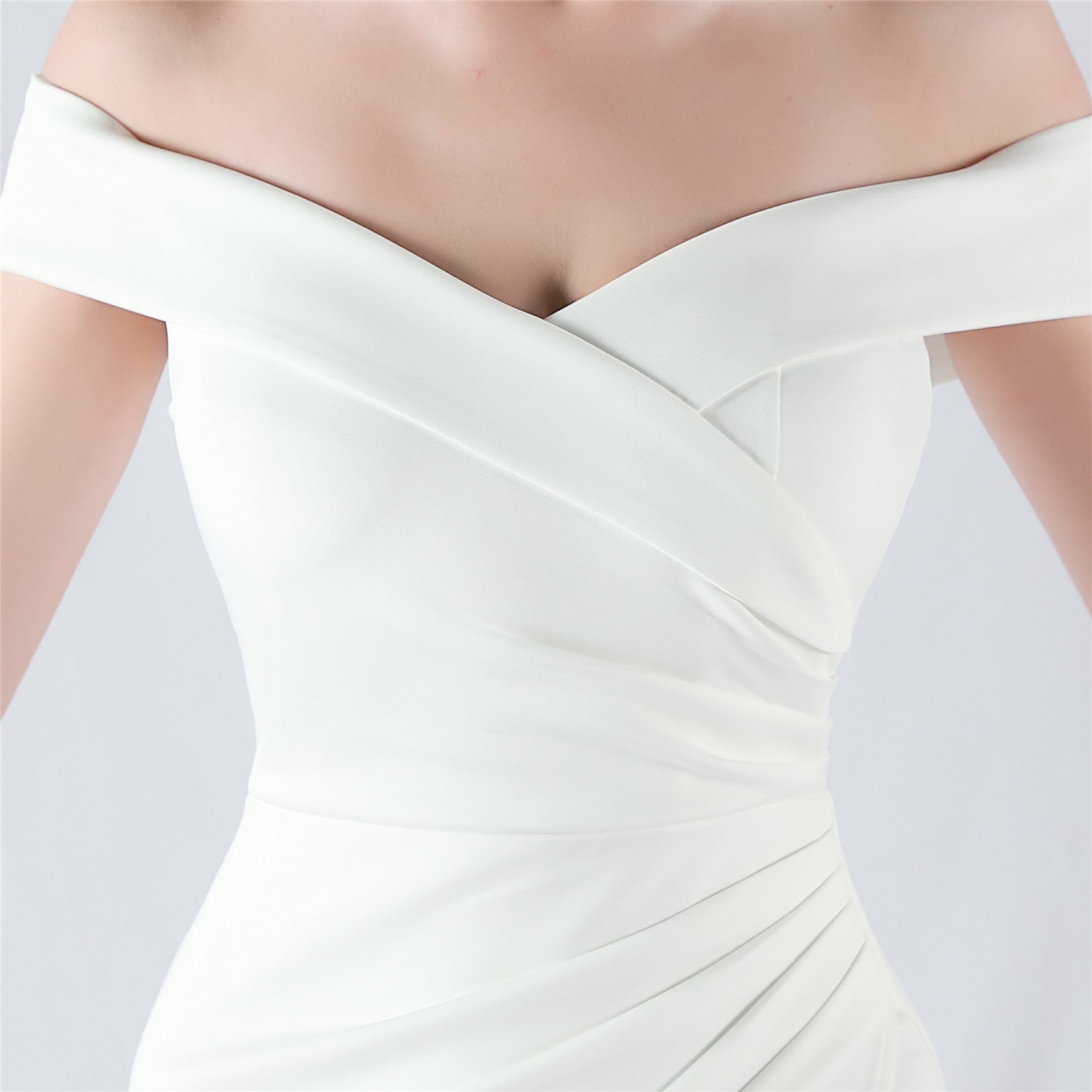 Exuding timeless beauty, the Scarlet/White gown is an elegant choice for any formal event. With a chic off-shoulder neckline, ruched bodice, and mermaid design, it showcases sophistication and modern flair. The premium stretch fabric ensures a comfortable fit, while the side slit adds allure and enhances movement. Perfect for prom, galas, weddings, or black-tie events.